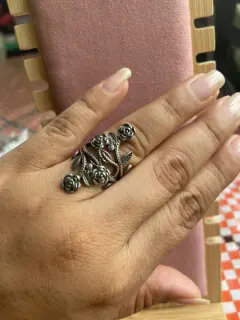 Hermoso anillo de rosas, la talla es ajustable, es una hermosa pieza de acero inoxidable envejecido que le da ese toque vintage, es nuevo.