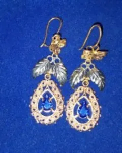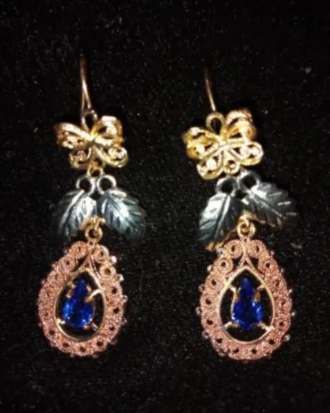 Divinos aretes de filigrana de chapa de oro de excelente calidad, lucen divinos, piedra de color azul.