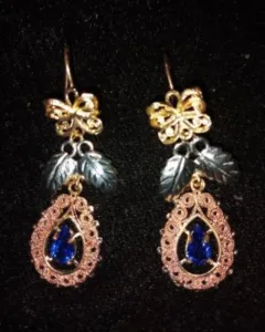 Arete de filigrana. Divinos aretes de filigrana de chapa de oro de excelente calidad, lucen divinos, piedra de color azul.