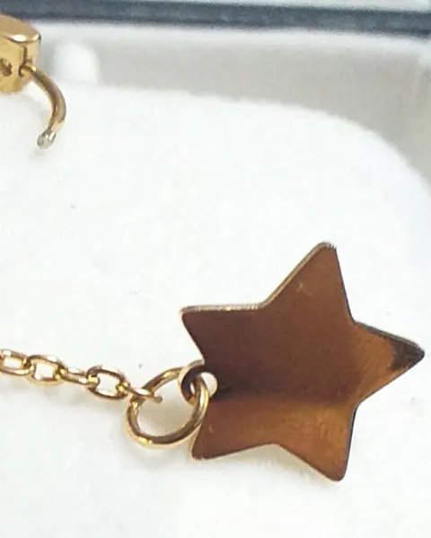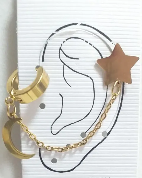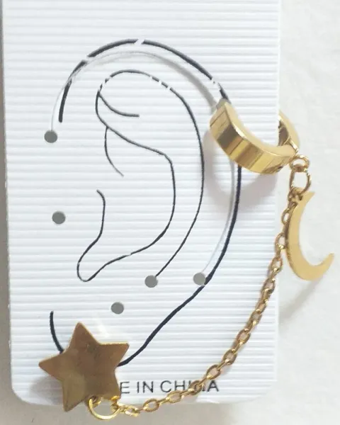 Arete trepador Luna y estrella. Arete trepador ,para dos orificios , estrella y luna en Acero Quirúrgico inoxidable de 316L de excelente calidad. SOLO ES UN ARETE **Medida. 4cm