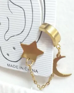 Arete trepador ,para dos orificios , estrella y luna en Acero Quirúrgico inoxidable de 316L de excelente calidad. SOLO ES UN ARETE **Medida. 4cm