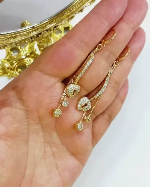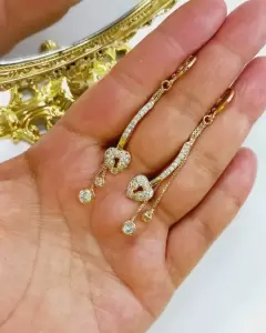 Aretes Cerradura de Corazón. Bellísimos aretes super brillantes... lucen padrísimos!!!Laminado de oro y zirconias.Largo 6 cms.Completamente nuevos, sin ningún detalle y listos para enviar.*PRECIO FIJO