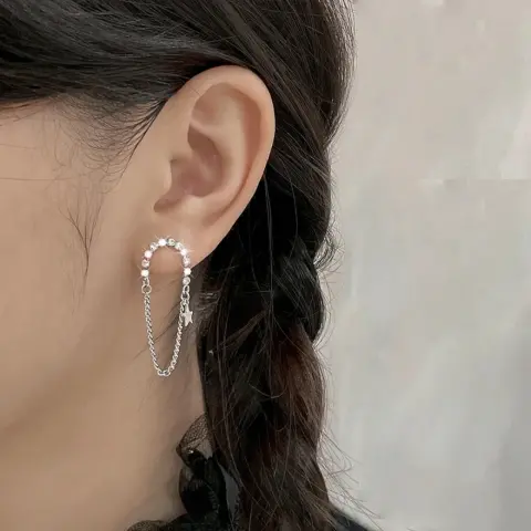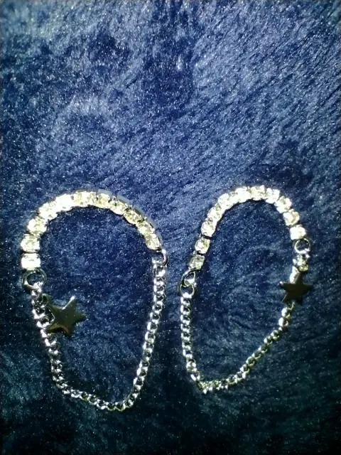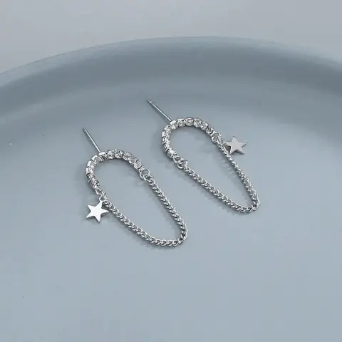 Hermosos aretes con circonia cadena y estrellas es un modelo súper original de excelente calidad muy hermosos que lucen preciosos de plata S925 con quintado, dale a tu look un toque diferente con estos Hermosos aretes ⚠️Si está publicado está disponible, solo acepto ofertas razonables, se envié en empaques reciclados, solo oferta o pregunta si estas realmente interesada⚠️