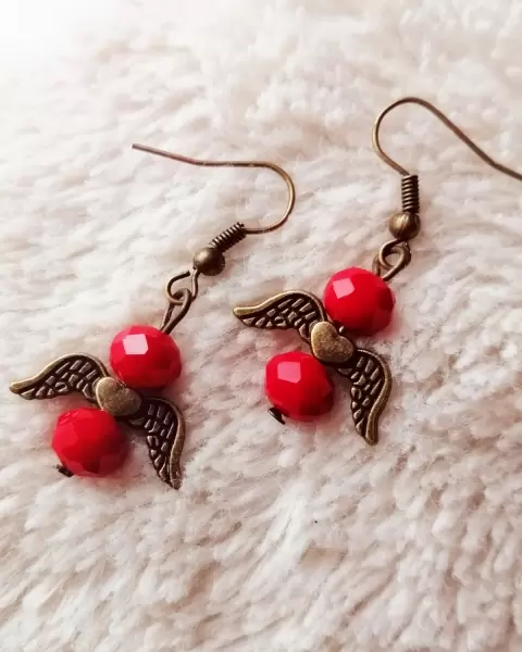 Aretes con corazón alado rojo cristal