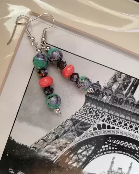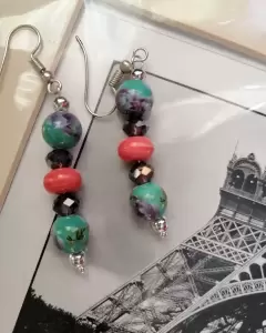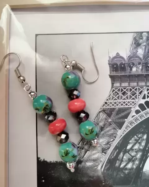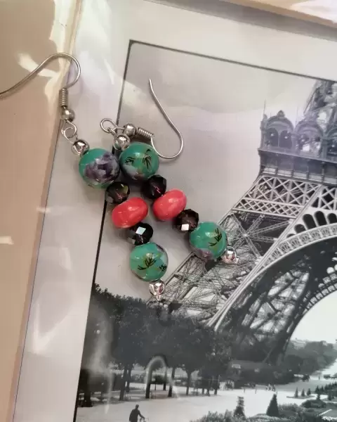 Aretes de cerámica verdes floreado y cristal