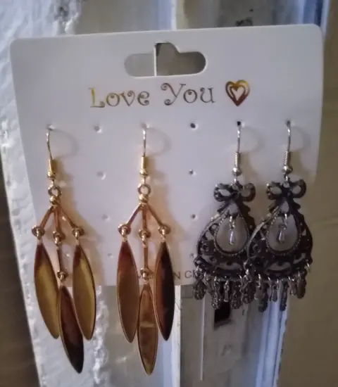Aretes de fantasía fina. Hermoso, elegante y sofisticado duo de aretes que encajaran perfecto con tu outfit.💛Color dorado 🤍Calor grisEstilo: largos.