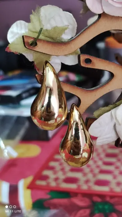 Aretes de gota en chapa de oro. Aretes de moda en forma de gota de material chapa de oro de 18k