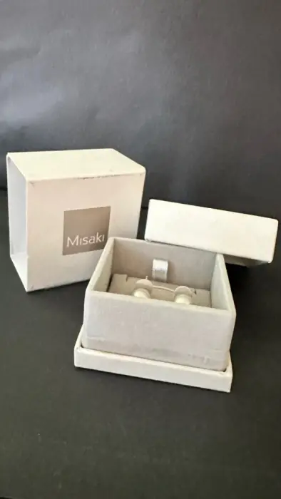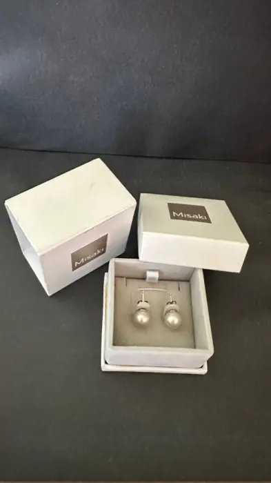 Aretes de perlas Misaki. Super lindo juego de aretes de perlas marca Misaki Mónaco , color gris de 6 mm.Las perlas son perlas cultivadas de agua dulce con poste de plata, están completamente nuevos.
