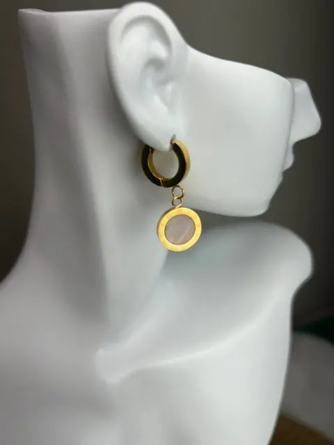 Aretes dorados con madre perla. Aretes dorados con madre perla, números romanos. Envío sábados tal vez antes. No hago intercambios ni apartados. Acepto ofertas justas y de compra inmediata.
