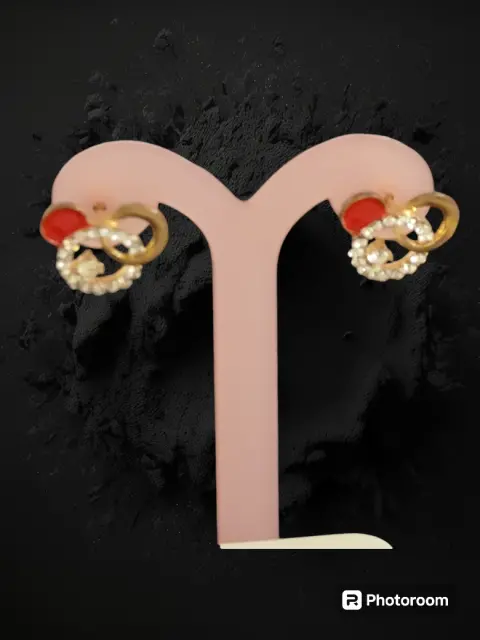 Aretes Fashion Linda New York, modelo de circulos aluciendo a Mickey Mouse, con acentos de piedras y color rojo, con cierre de broche de precion nuevos a estrenar con etiqueta en buen estado cosmetico.
