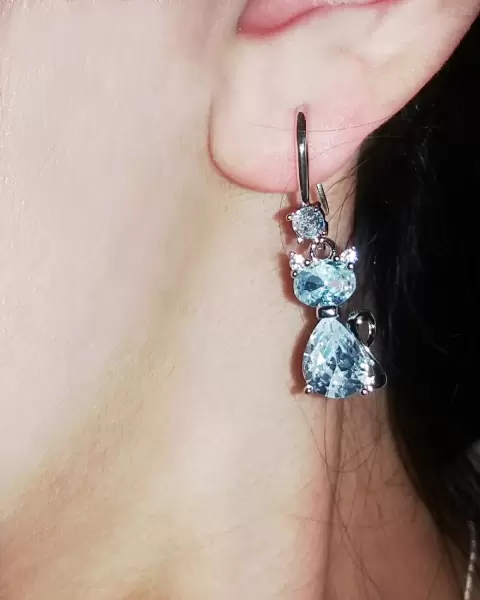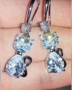 Aretes gatito con zirconias S925. Aretes de gatito con zirconias azules claritas, plata S925 para usarlos siempre y resaltar tu belleza!