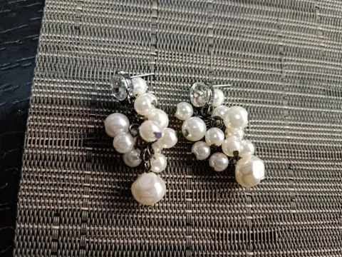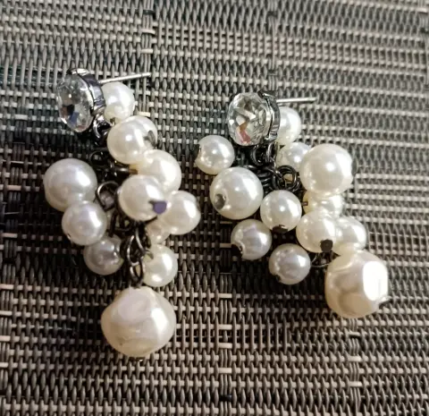 HERMOSOS ARETES GUESS, TIPO PERLA Y AL CENTRO CUBO DE ZIRCONIA,4.5 CM DE LARGO,XOMO DETALLE NO TRAE LAS MARIPOSAS