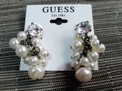 ARETES GUESS TIPO PERLA. HERMOSOS ARETES GUESS, TIPO PERLA Y AL CENTRO CUBO DE ZIRCONIA,4.5 CM DE LARGO,XOMO DETALLE NO TRAE LAS MARIPOSAS