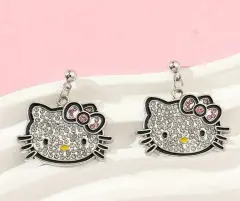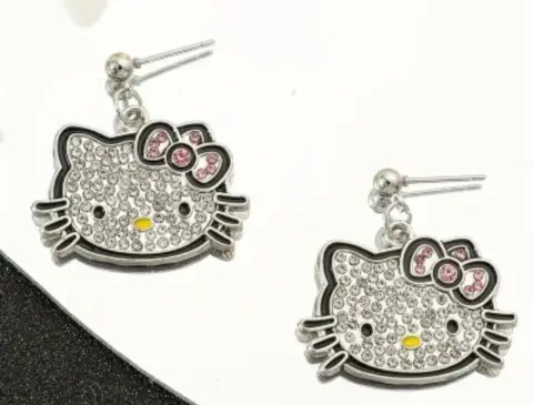 Lindos aretes de hello KittyCon cristales brillan muchoSon hermososMedidas 2cm de largoAncho 2.9 cm