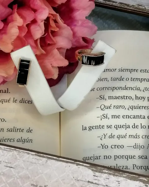 Aretes media churumbella. Hermosos Aretes media Churumbella con Elegante Pedrería en obsidiana en Oro laminado