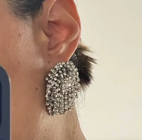Aretes plateados de Stradivarius. Tiene todas sus piedras, se ven muy lindos puestos.Miden 4 cm