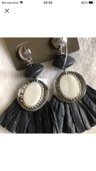 Lindos aretes artesanales … la parte de abajo de la piedra es papel… muy hermosos … y atrás con piel … puestos una vez