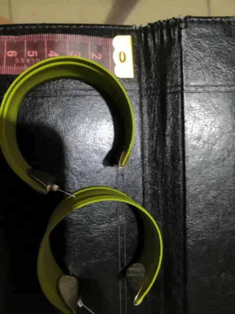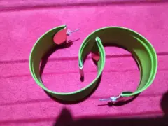Aretes verde pistache, largos y anchos. Aretes verde pistache, tiene 6cm de largo y 3 de ancho, sin detalles el material del arete es metálico recubierto con goma