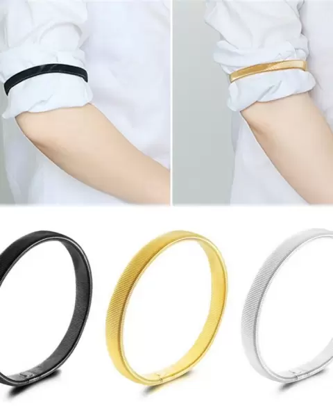 Arm bands metálicas GCT Accesorios. Incluye 2 piezas de 8 cm de diámetro x 1 cm de grosor, estira hasta 25 cm aproximadamente y recupera su tamaño original.