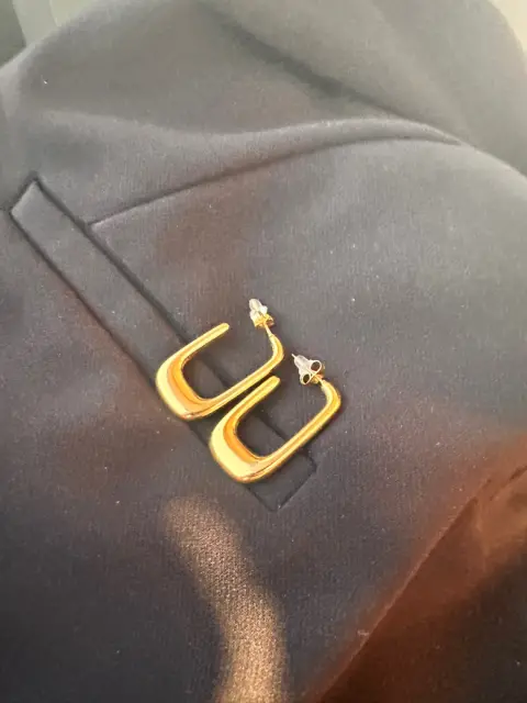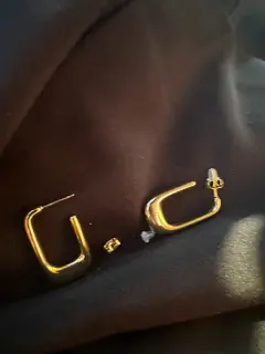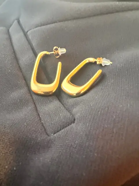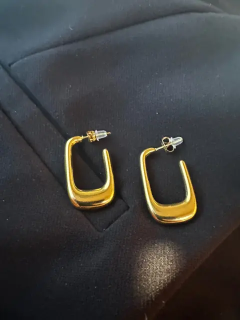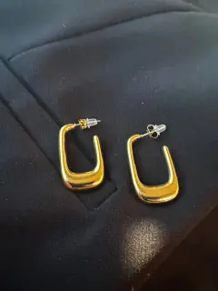 Arracada rectangular. Arracadas de acero inoxidable de 3.5 cms de alto color dorado con cierre mariposa