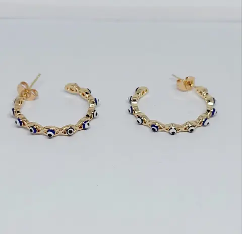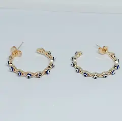 Arracadas de acero inoxidable con ojo turco. Arracadas de acero inoxidable con ojos turcos Color dorado