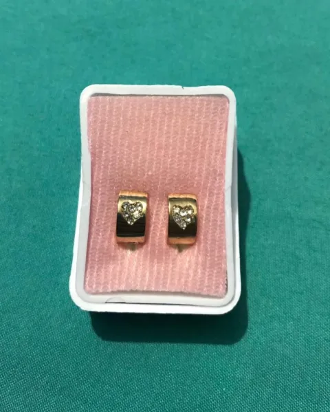 Hermosas arracadas pequeñas con corazón. Son de oro laminado.