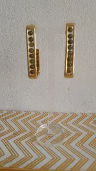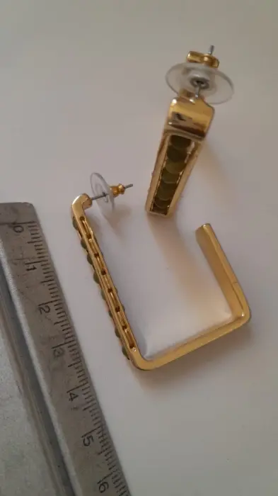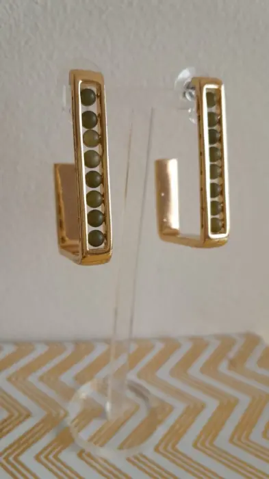 Arracadas rectangulares doradas. Padrísimas arracadas rectangulares color dorado con piedritas verde olivo. Material sólido, no se hacen feas