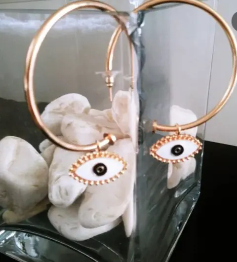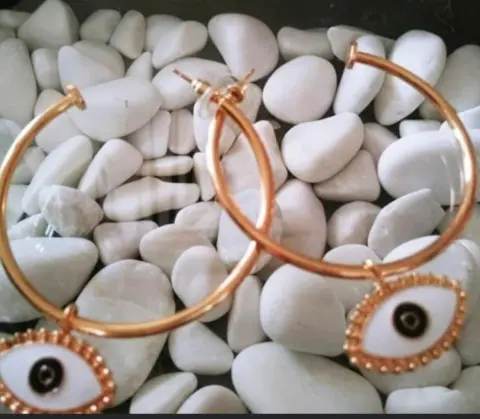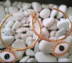 Hermosas Arracadas de ojo turco color dorada, son grandes pero no pesan. De excelente tamaño para lucir con cualquier prenda