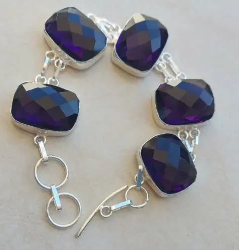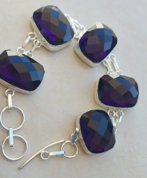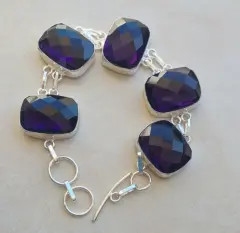 Bella pulsera de amatista. Fabricada a mano en plata ley 925 y amatista natural.La amatista es una piedra meditativa y calmante que trabaja en los planos emocional, espiritual y físico para promover la calma, el equilibrio y la paz. También se utiliza para eliminar la impaciencia.