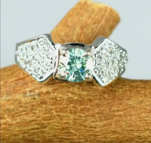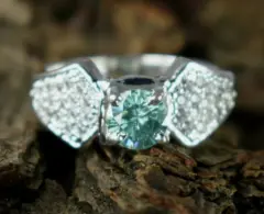 Bello anillo de diamante. Hermoso anillo de compromiso en plata ley 925, diamante natural en tono celeste de 3.07 ct. y zafiros transparentes...Talla. 9Cuenta con su certificado de autenticidadUna joya que es para siempre.