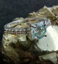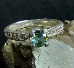 Bello anillo moissanita. Fabricado en plata ley 925, moissanita de 1.08 en tono verde militar y circonias transparentes.Talla 9Todos mis anillos moissanita pasan la prueba de diamanteCuento con ajustador, si buscas talla mas pequeña.
