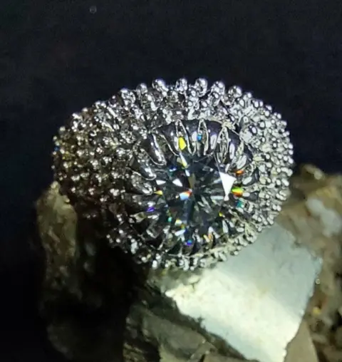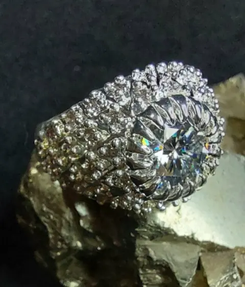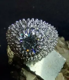 Fabricado en plata ley 925 con 3 baños (oro 18k, platino y rodio)moisanita color D VVS1 de 5.79 y circonias transparentes AAAA de brillo deslumbrante.Talla 9