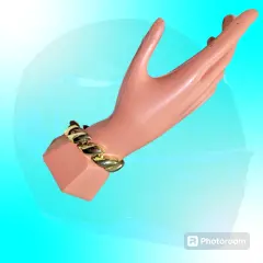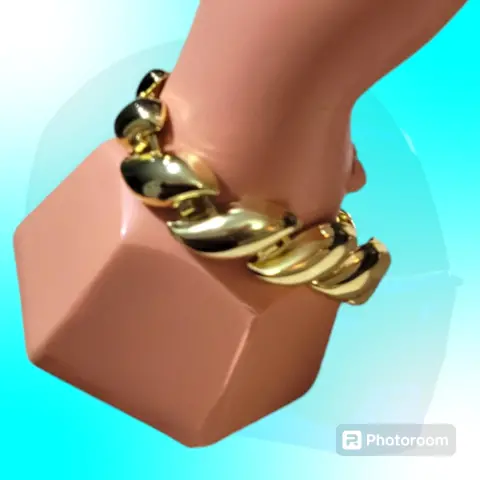 Brasalete ojuelas ovaladas chapeado, color dorado, cierre de precion, mide 21cm de largo elegante adición para tus atuendos favoritos nuevo a estrenar con etiqueta en buen estado cosmetico.