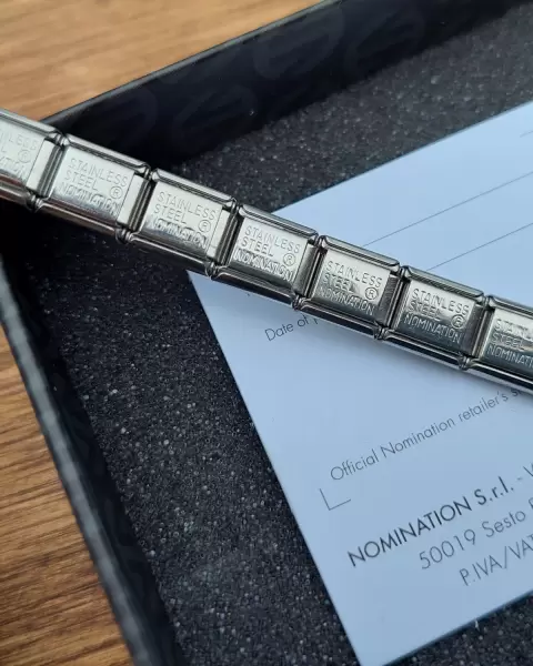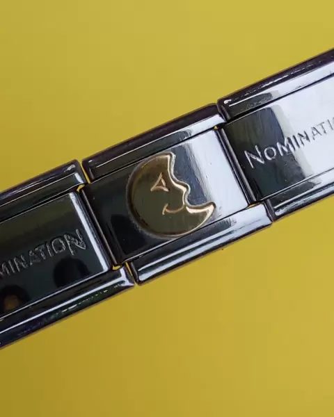 Brazalete Acero Nomination. Hola! Vendo este increíble brazalete italiano marca Nomination nuevo y original.Es un accesorio super diferente a los que están de moda, puedes colocar charms modulares como el de la luna que está incluido.15 enlaces acero1 enlace de acero y luna de oro amarillo.