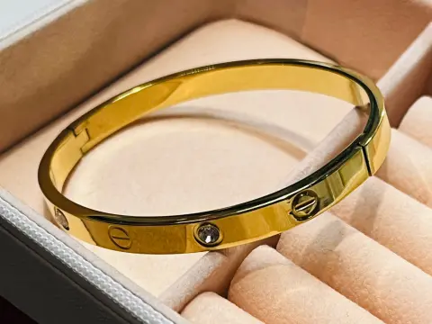 Brazalete tipo Cartier Color dorado, acero inoxidable calidad premium, esmaltado alto brilloCon circonias incrustadas en detallesARMO PAQUETES Y HAGO DESCUENTOS ESPECIALES.