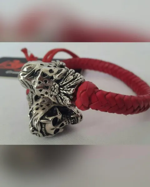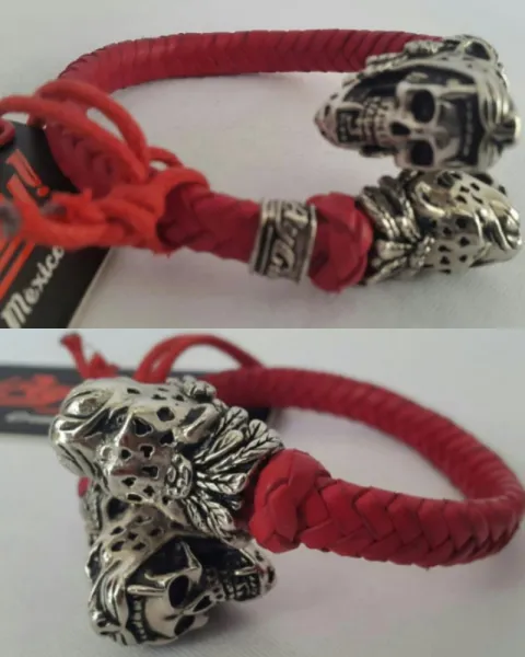Brazalete en Piel Calavera Jaguar Doble Rojo