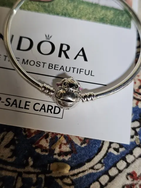 Brazalete Pandora Stitch. Hermoso brazalete Pandora "Love at first bite"Talla 19 cm, tiene detallitos de uso muy leves (rayoncitos).Se va con todo lo de la foto, precio negociable.
