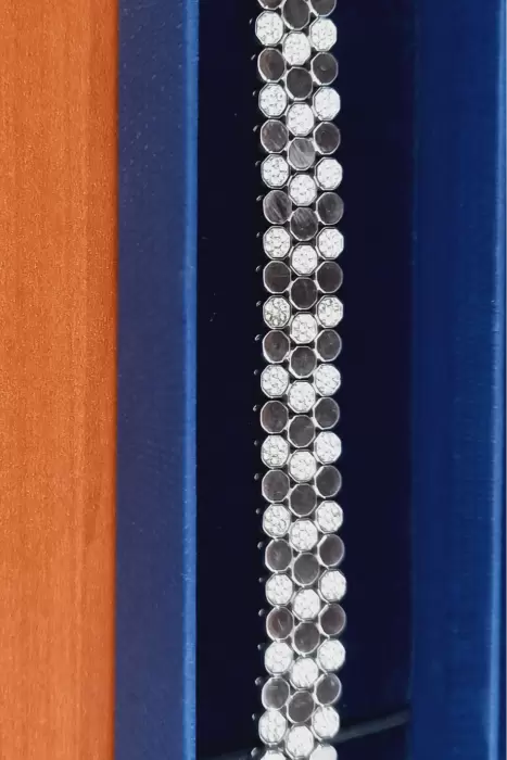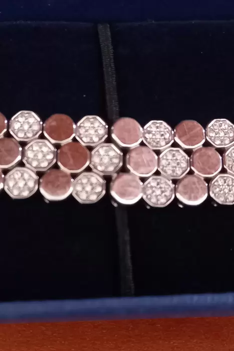Hermoso brazalete swarovsky , luce muy lindo, mide de largo 17.5 cm de largo x 1.3 cm de ancho, en buen estado general solo esta un poco rayada (lo puedes apreciar haciendo zoom en las fotos ). Se envía con cajita.