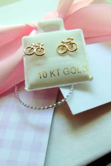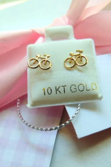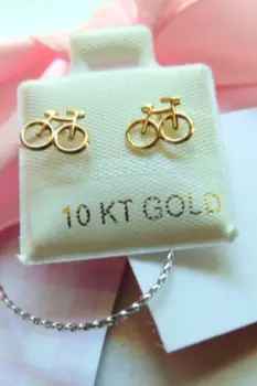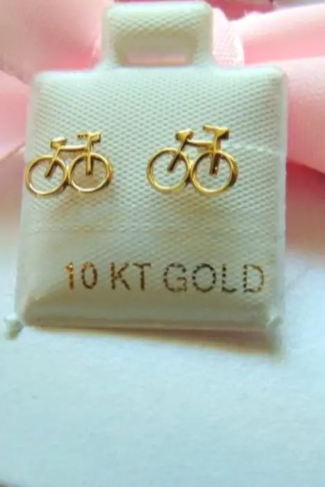 BROQUEL DE 10 KILATES / BICICLETA Perno de 8 mm de largoLa figura mide 1 cm de largo y 8 mm de alto.El broche es de bolita que se enrosca.Disponible para envio inmediato.