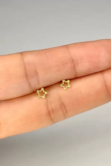 Broquel Estrella silueta bb “SON MUY PEQUEÑOS”oro solido 10 k.La pieza mide 5 mm.El poste mide 6 mm El broche es de bolita*NO CHAPA, NO ORO LAMINADO, NO BAÑO DE ORO*