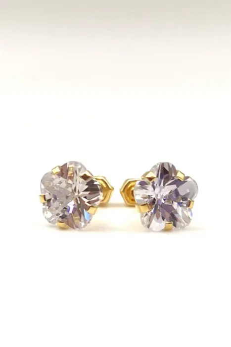 Broquel flor 6 mm oro 10k. Broquel Flor R6*SON MUY PEQUEÑOS*Quedan para cualquier edad, bebes, niñas y adultoOro solido 10 kilatesLa pieza mide 6 mm de diámetroLa piedra es una circonia en forma de flor que se sostiene con uñitasEl poste mide 6 mmEl broche es de bolita que se enrosca*NO CHAPA, NO ORO LAMINADO, NO BAÑO DE ORO*