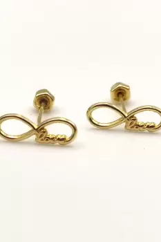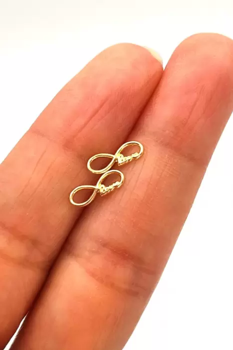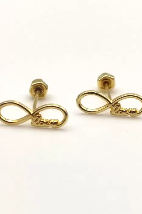BROQUEL INFINITO LOVE*SON SUPER PEQUEÑOS*Mide 9 mmEl broche es de bolita que se enroscaEl ganchito se ajusta a la parte alta de la orejaOro solido 10k*NO CHAPA, NO ORO LAMINADO, NO BAÑO DE ORO*