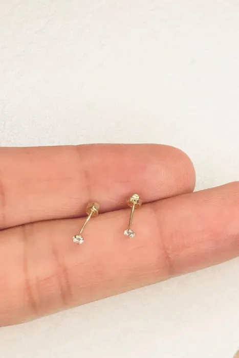 Broquel piedra blanca 2 mm oro 10k. Broquel Recto 2 mmOro solido 10 kLa piedra es circonia y mide 2 mm. OJO son super pequeñitos.El broche es de bolita*NO CHAPA, NO ORO LAMINADO, NO BAÑO DE ORO*
