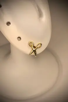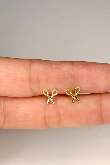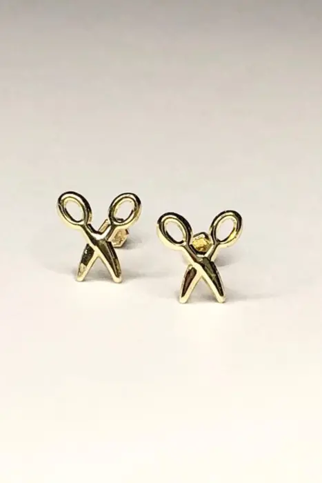 Broquel TijerasOro solido 10 k.Medidas 8 mm alto x 7 mm anchoEl perno mide 7 mmEl broche es de bolita que se enroscaFuncionan para cualquier edad*SON SUPER PEQUEÑOS**NO CHAPA, NO ORO LAMINADO, NO BAÑO DE ORO*