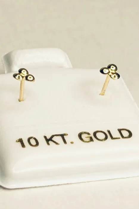 Broquel tres puntos oro 10k. Broquel tres puntos S mide 3mm “OJO SON MUY PEQUEÑOS”Oro solido 10 kilatesEl broche es de bolita*NO CHAPA, NO ORO LAMINADO, NO BAÑO DE ORO*