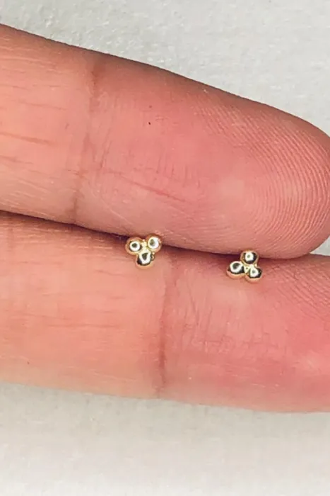 Broquel tres puntos S mide 3mm “OJO SON MUY PEQUEÑOS”Oro solido 10 kilatesEl broche es de bolita*NO CHAPA, NO ORO LAMINADO, NO BAÑO DE ORO*