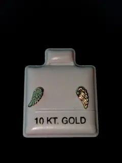 BROQUELES DE ORO 10 K. 📌 BROQUELES 📌 FIGURA DE ALA 📌ORO SOLIDO 10 K📌SON PEQUEÑOS📌 PUNTA DE ALFILER📌IDEAL PARA PIERCING📌 BROCHE DE BOLITA📌MUY LINDOS💯