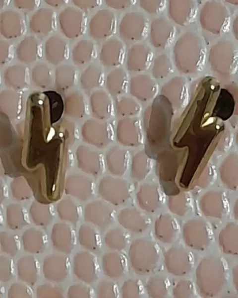 Broqueles rayo oro. Broquel rayo, oro sólido de 10k, la figura mide 7 mm, de punta a punta, son muy chiquitos, el broche es de bolita.