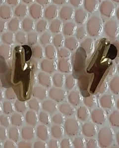 Broquel rayo, oro sólido de 10k, la figura mide 7 mm, de punta a punta, son muy chiquitos, el broche es de bolita.