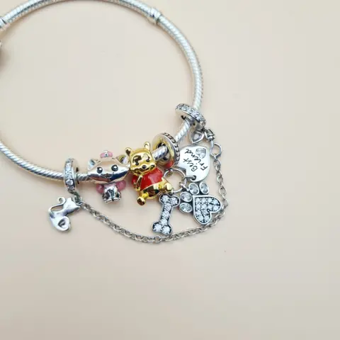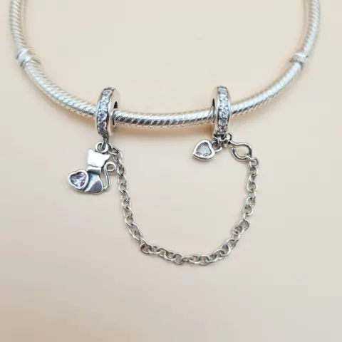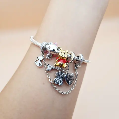 Elaborado con plata esterlina S925, sus sujetadores tienen zirconias blancas y la cadena tiene unos gatitos con una zirconia rosa como decoración Armo paquetes y te ofrezco mejor precio 📦 😊 🛍 Los Charms se venden por separado